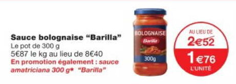 Sauce Bolognaise Barilla chez Monoprix (21/10 - 02/11)
