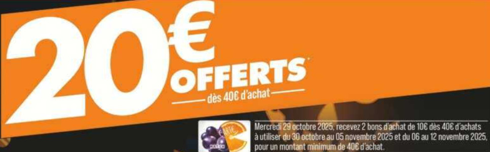 Sujet: 20€ en Bons d'Achat dès 40€ d'Achats chez Match le 29/10 (Lu 438 fois)