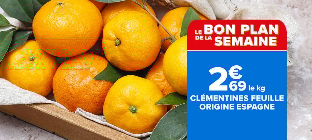 Carrefour : Clémentines feuille Origine Espagne 2,69€ le kg (28/10 - 01/11)
