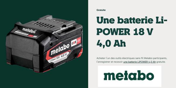 metabo : 1 Outil de jardin Acheté = 1 Batterie 18V 4,0 Ah Offerte