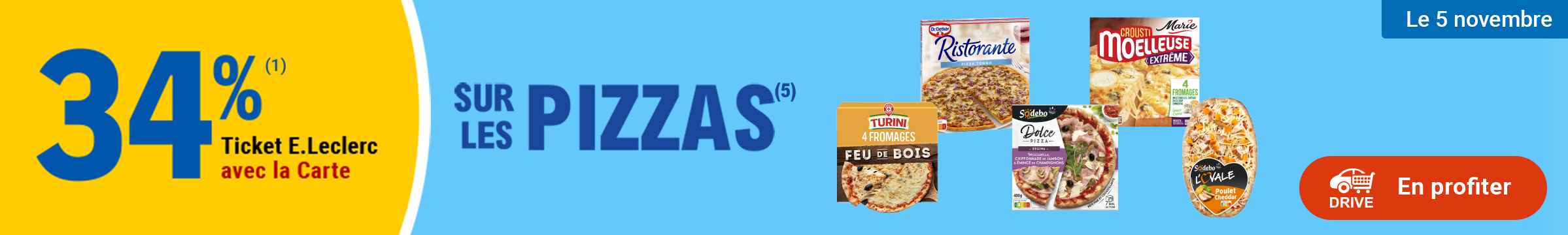 Leclerc : 34% en ticket leclerc sur les pizzas (Le 05/11)