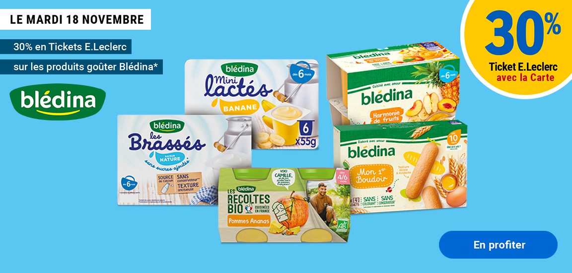 Leclerc : 30% en ticket leclerc sur les produits goûter Blédina (Le 18/11)