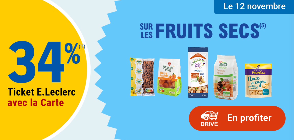 Auteur Sujet: Leclerc : 34% en ticket leclerc sur les fruits secs (Le 12/11)  (Lu 556 fois)
