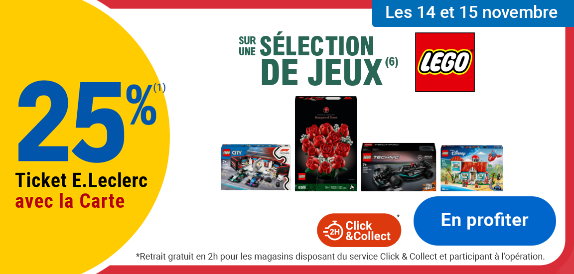 Auteur Sujet: Leclerc : 25% en ticket leclerc sur sélection jouets d'une marque (14/11-15/11)  (Lu 763 fois)