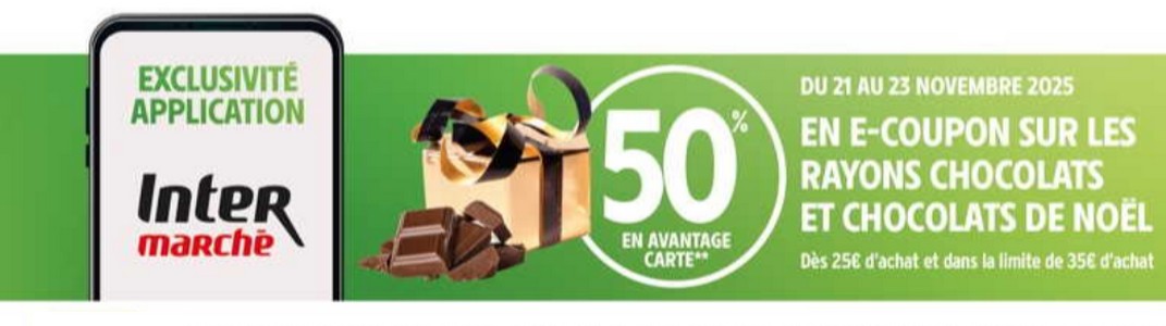 Auteur Sujet: Intermarché : 50% en avantage carte sur toules Chocolats (21/11 - 23/11)  (Lu 1200 fois)