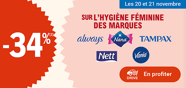 Sujet: Leclerc : 34% de RI sur sélection marques hygiène féminine (20/11 - 21/11) (Lu 178 fois)