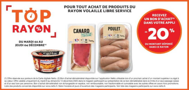 Rayon Volaille Libre Service chez Netto (02/12 - 04/12)