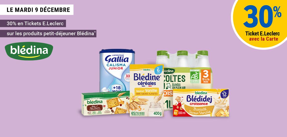 Sujet: Leclerc : 30% en ticket leclerc sur produits petit-déjeuner Blédina (Le 09/12) (Lu 458 fois)