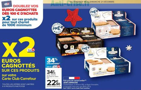 Carrefour : 68% de cagnottage sur le Foie gras de canard entier Jean LARNAUDIE