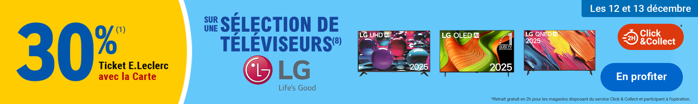 Auteur Sujet: Leclerc : 30% en ticket leclerc sur une sélection de TV LG (12/12 - 13/12)  (Lu 618 fois)