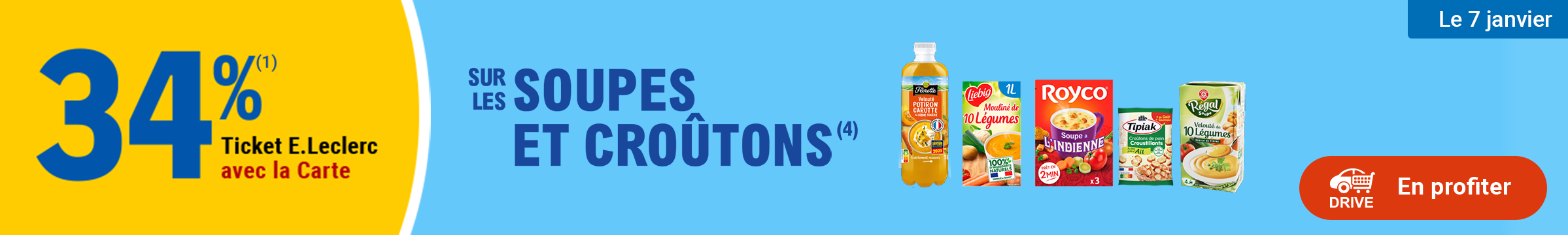 (1) Offre en Ticket E.Leclerc non cumulable avec des produits de la même gamme bénéficiant d’un autre « Ticket E.Leclerc » ou d’une autre promotion. Bon d’achat réservé aux porteurs de la Carte E.Leclerc, sur présentation en caisse de la Carte E.Leclerc et valable dès le lendemain de son obtention, cumulable sur la Carte E.Leclerc et utilisable sur tous les produits de l’ensemble des centres E.Leclerc participant au programme de fidélité. Offre limitée à 15 produits par foyer par opération et non cumulable avec des produits de la même gamme bénéficiant d’un autre « Ticket E.Leclerc » ou d’une autre promotion. Carte E.Leclerc 100 % gratuite et disponible immédiatement. Offre réservée à une consommation personnelle. Le magasin se réserve le droit de refuser toute demande d’une quantité supérieure aux besoins habituels généralement constatés pour une consommation personnelle. Offre interdite à la revente. Offre non cumulable avec des produits de la même gamme bénéficiant d’une autre promotion et non valable sur les produits signalés en magasin.