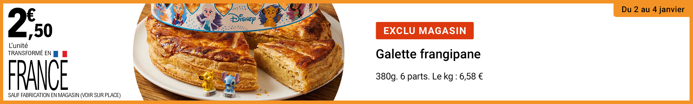 Leclerc : galette frangipane transformé en France 2.50€ l'unité (02/01 - 04/01)