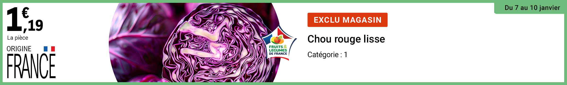 Sujet: Leclerc : chou rouge lisse origine France 1.19€ la pièce (07/01 - 10/01) (Lu 93 fois)