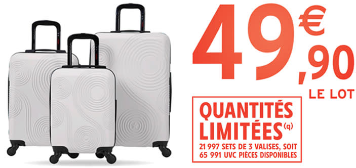 Intermarché : Lot 3 valises 40/50/60cm Ivoire 49.90€ le lot (24/03 - 29/03)