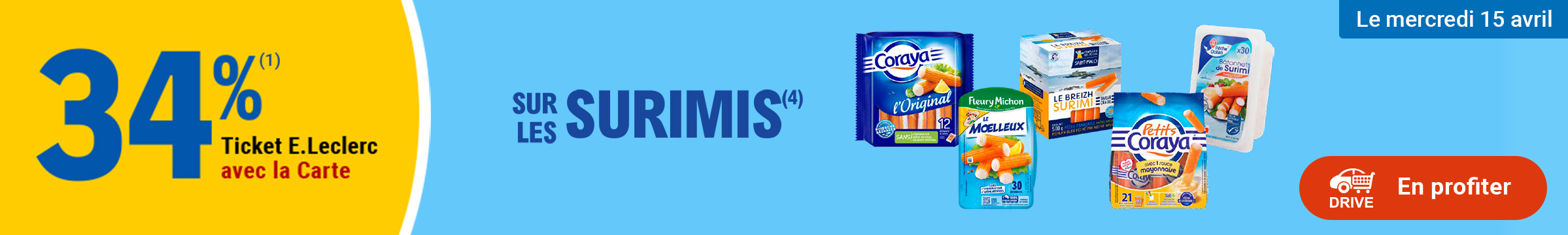 Leclerc : 34% en ticket leclerc sur les surimis (Le 15/04)