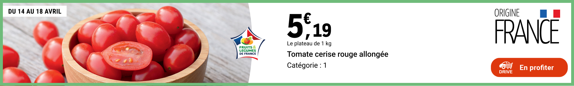 Re: Leclerc : tomate cerise rouge allongée 5.19€ le kg origine France (14/4 - 18/4)