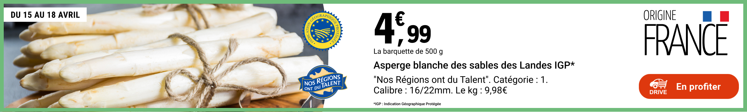 Re: Leclerc : asperge blanche 4.99€ les 500g origine France (15/04 - 18/04)