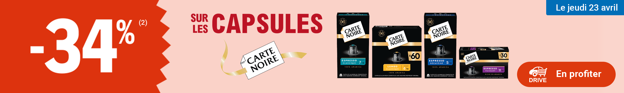 Auteur Sujet: Leclerc : 34% de RI sur les capsules Carte Noire (Le 23/04)  (Lu 134 fois)