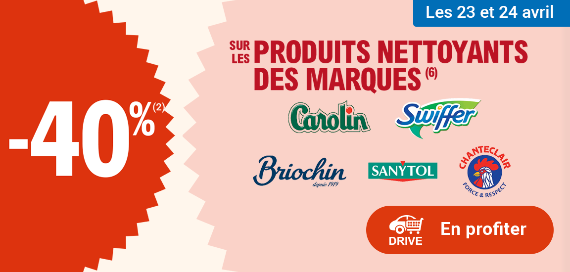 Auteur Sujet: Leclerc : 40% de RI sur sélection de marques produits nettoyants (23/4 - 24/4)  (Lu 166 fois)