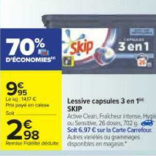 Re: Lessive en Capsules 3en1 Skip chez Carrefour (15/06 - 28/06)